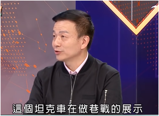 於北辰説,這麼大一門炮在狹小的巷道里面,一轉就打到牆壁了,根本無法去瞄準。“你真的以為台灣的城鎮,都跟你們一樣是土房子嗎?這麼矮,裏面都是土坡嗎?”他説,在台灣,進到哪一個城鎮,台北、桃園、新北,高樓大廈林立,坦克根本開不出去。他還聲稱,“解放軍公開的96A坦克,完全就是嚇唬台灣民眾。”