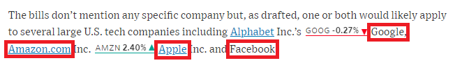 儘管歐盟方面並未列出“看門人”公司的名單,但《華爾街日報》的評論文章認為,新法案劍指谷歌、亞馬遜、蘋果、臉書等美國科技巨頭的意味顯而易見。因為根據法案內容,主要監管對象是擁有超過歐盟人口10%即4500萬用户的大型在線平台,而能滿足這些條件的公司寥寥無幾。