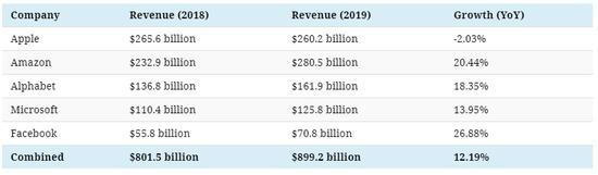 △美國五大科技巨頭在2018年和2019年的收入(圖自網絡)