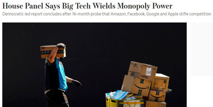早在10月,美國國會眾議院司法委員會反壟斷小組就發佈報告稱,蘋果、臉書、亞馬遜和谷歌等科技巨頭利用其壟斷地位打壓競爭者、壓制行業創新。