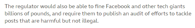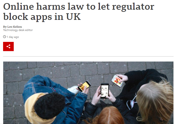 就在歐盟發佈新法草案的同一天,英國政府也發佈了醖釀已久的《在線安全立法》計劃,針對谷歌、臉書等網絡平台規定了新的責任和義務,要求它們必須及時“刪除並限制有害內容的傳播”,否則將面臨上千萬至數十億英鎊的重罰。