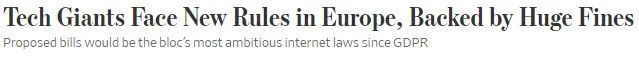 或許可以這樣説,嚴格的歐盟新法案將給這些美國科技巨頭的“好日子”添點堵了。