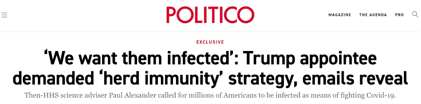 當地時間12月16日,美國“政客”新聞網披露內部郵件內容稱,美國衞生部(HHS)前科學顧問保羅·亞歷山大曾多次攻擊科學家,試圖淡化疫情的嚴重性,並敦促高級衞生官員們採取“羣體免疫”的策略,讓無數美國人感染新冠肺炎。