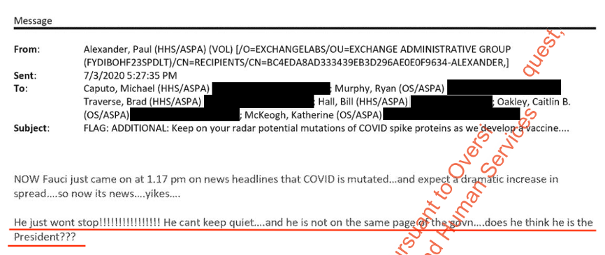美國衞生高官郵件遭曝光:不遺餘力攻擊科學家 直言 “別讓福奇説話”