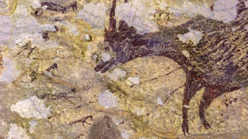 去年12月,澳大利亞科學家報告了一幅在印度尼西亞發現的洞穴藝術畫作,這幅作品描繪了一些類人形象狩獵豬和水牛的畫面。研究人員使用鈾系法,為這幅4.5米寬的岩石藝術作品進行了測年,結果發現其至少可追溯至4.4萬年以前,是迄今已知的最早狩獵場景。