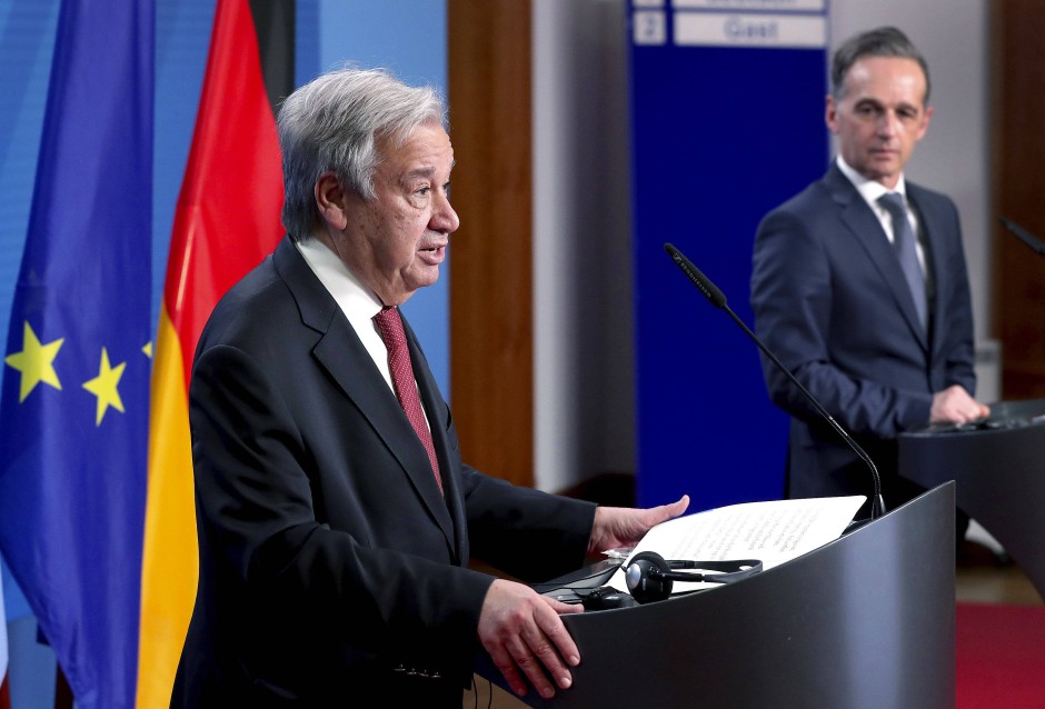 △古特雷斯(左)和馬斯在記者會上(圖片來源:德新社)