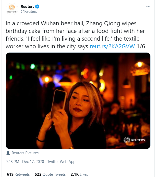 目前,路透社這篇關於武漢的報道還在境外的社交網絡“推特”上引起了熱議。