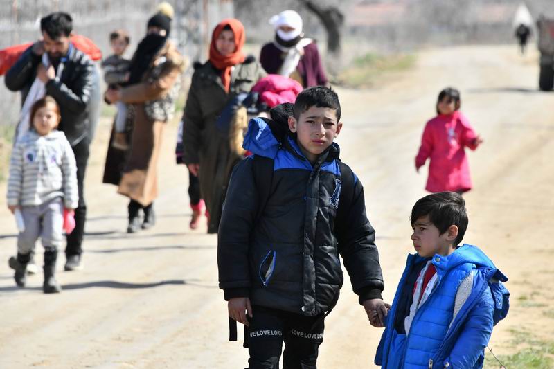 在土耳其埃迪爾內省,非法移民走向土耳其歐盟邊界。