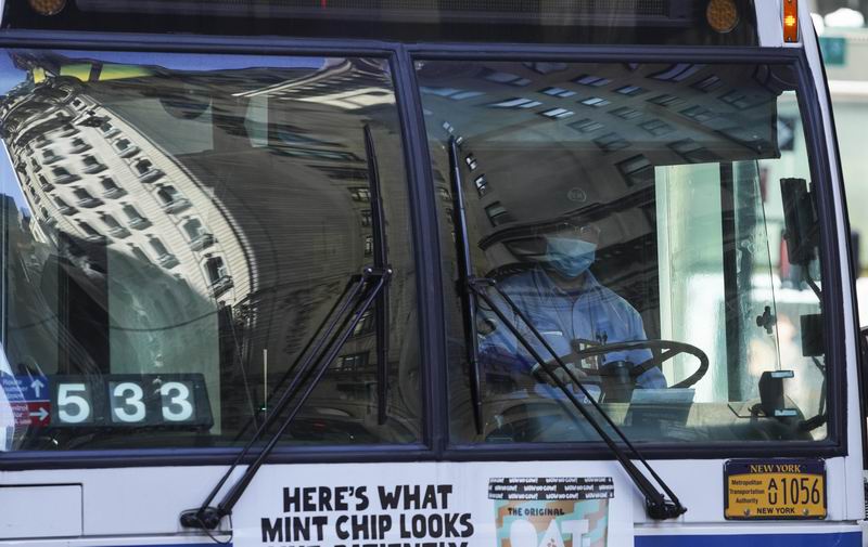 2020年9月,公交司機駕駛車輛行駛在美國紐約街頭。美國8月失業率繼續下降 但仍不及疫情前水平