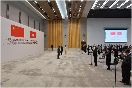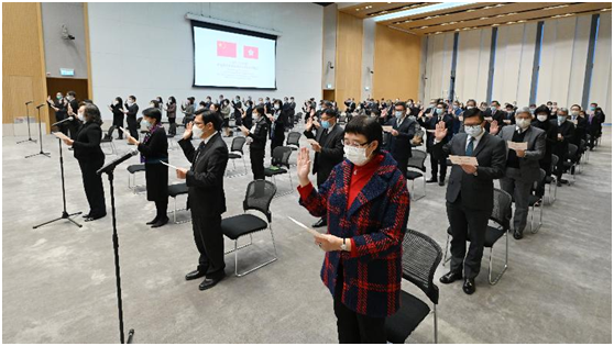 在公務員事務局常任秘書長楊何蓓茵帶領下,常任秘書長、部門首長和一眾高級首長級公務員宣誓擁護《中華人民共和國香港特別行政區基本法》(《基本法》)、效忠中華人民共和國香港特別行政區(香港特區)、盡忠職守和對特區政府負責。