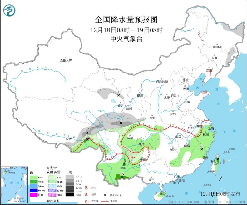 今明天,我國降水格局變化不大,江南等地陰雨寡照天氣持續,青藏高原東部、西北地區東部等地有降雪。