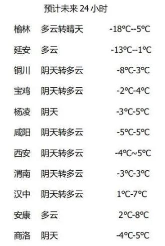 *預計今天白天:*陝北多雲間晴天,關中、陝南多雲間陰天。今天晚上:陝北晴天間多雲,關中、陝南陰天間多雲,陝南南部局地有小雪。