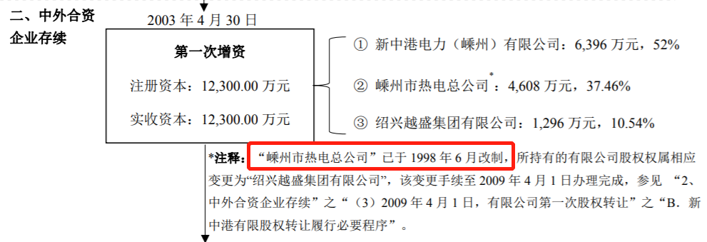 但是,招股書則披露,“嵊州市熱點總公司”於1998年6月改制,公司名稱也隨之變更為“紹興越盛集團有限公司”,也即這部分信息披露涉及到新中港控股股東的改制時點,與實控人履歷中記載並不一致。