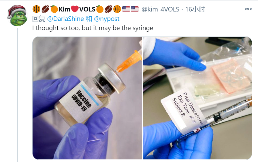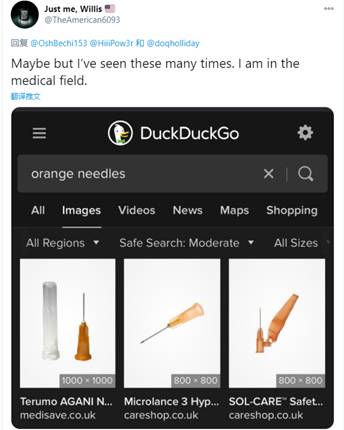 還有醫療界人士展示注射器的針頭圖片,並反駁説,“也許吧,但我見過很多次了。我在醫療領域工作。”