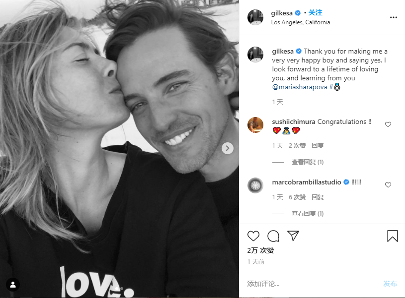 Gilkes 也在自己的 ins 上表白了未婚妻: