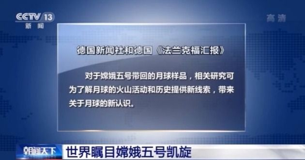 德國新聞社和德國《法蘭克福匯報》都報道説,對於嫦娥五號帶回的月球樣品,相關研究可為了解月球的火山活動和歷史提供新線索,帶來關於月球的新認識。