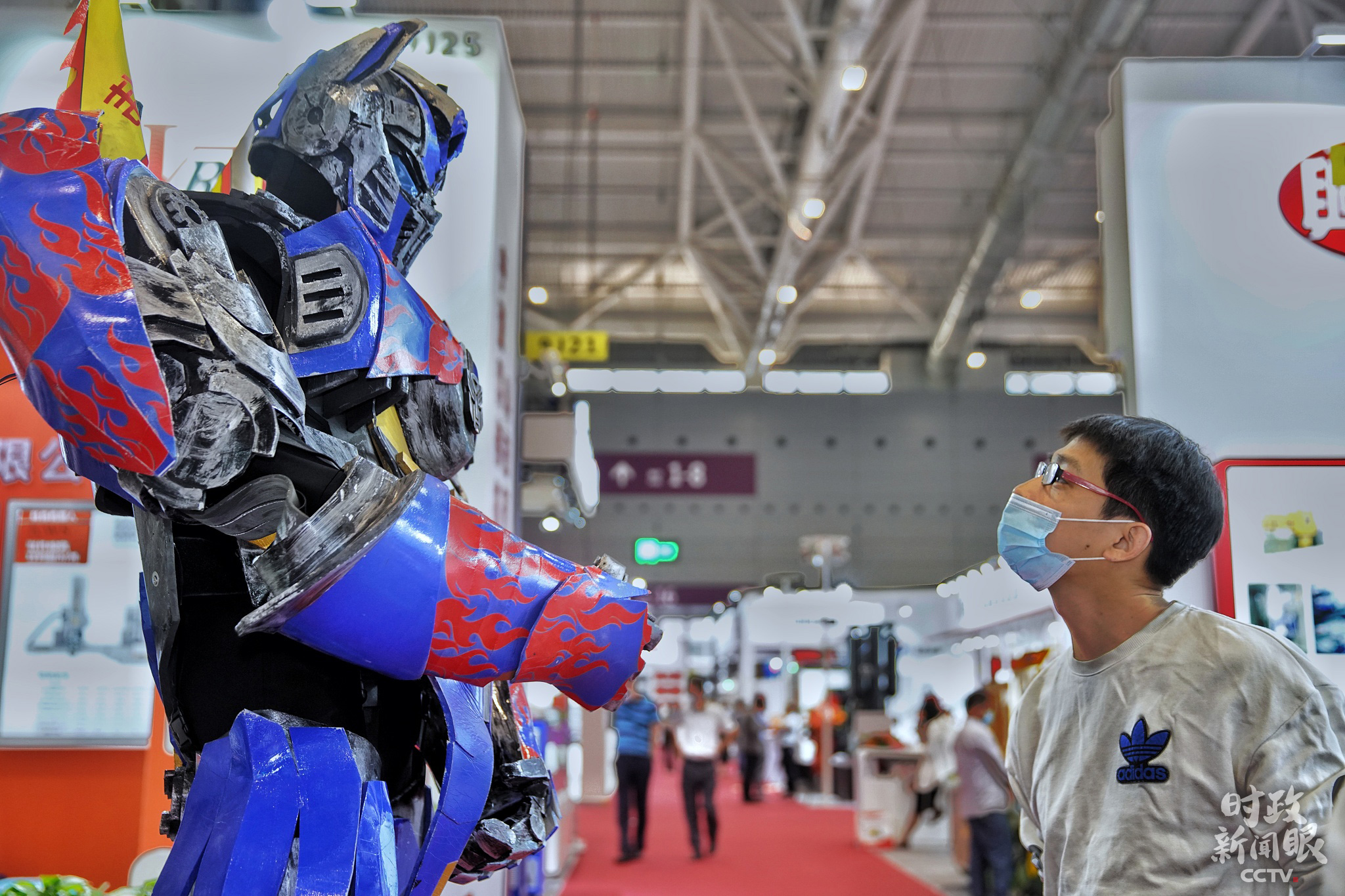 △11月25日,2020粵港澳大灣區數字經濟大會在深圳舉行。這是機械製造設備機器人展區。