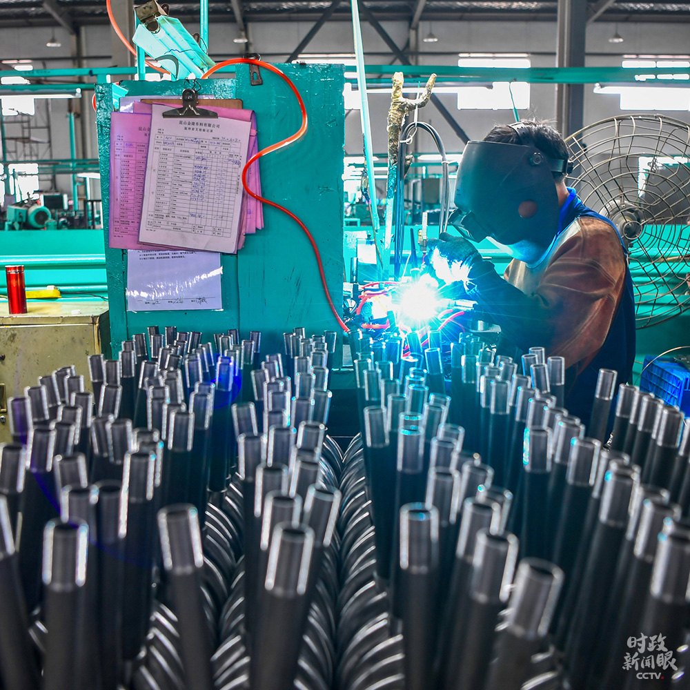 △江蘇海安某企業員工正加緊生產自行車零部件