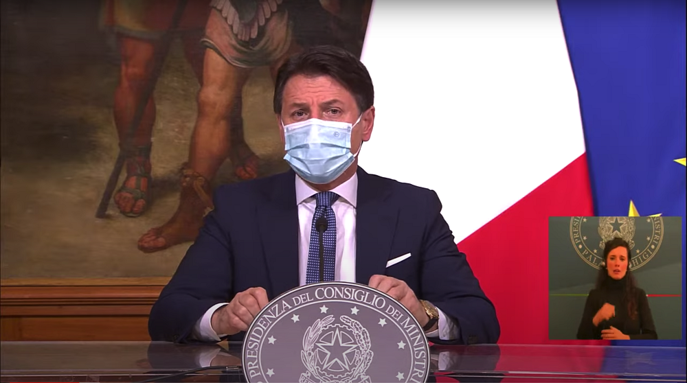 △圖片為意大利總理孔特新聞發佈會直播截圖