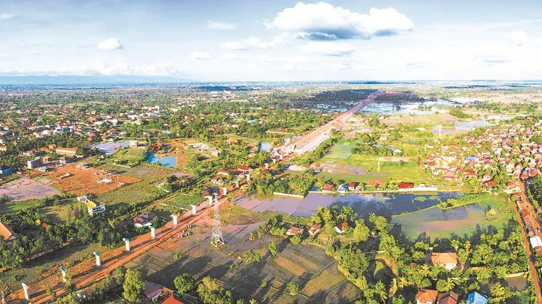 在老撾北部拍攝的建設中的中老鐵路。新華社發
