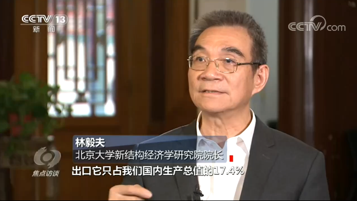 北京大學新結構經濟學研究院院長林毅夫説:“看具體的數字,2019年出口只佔國內生產總值的17.4%,也就是説在2019年82.6%的國民經濟是在經濟體內部消化掉了,已經在國內循環了。”