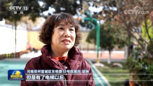 河南鄭州管城區東明路32號院居民 胡琳: 沒裝電梯之前,你看我們買個菜上去,一天都不下來。但有了電梯以後,我們上下樓方便了,對生活的熱情也大大提高了。