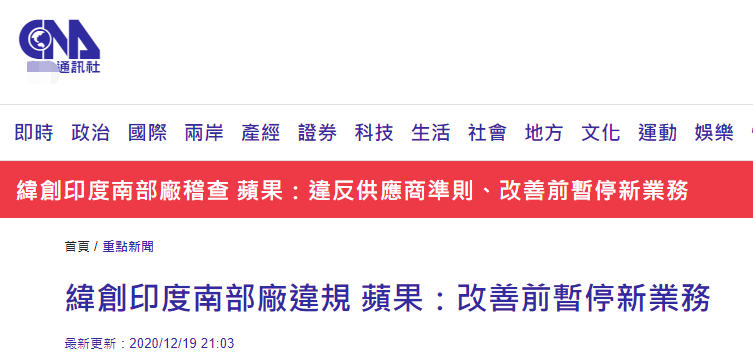 據台灣“中央社”、“聯合新聞網”報道,位於印度南部卡納塔克邦的工廠上週末發生暴力事件。蘋果在聲明中表示,初步的調查顯示,上週末緯創卡納塔克邦廠房之所以發生暴力事件,是因為違反蘋果“供應商行為準則”,緯創未能實施適當的工時管理流程,導致“部分員工10月和11月未能按時領到工資”。