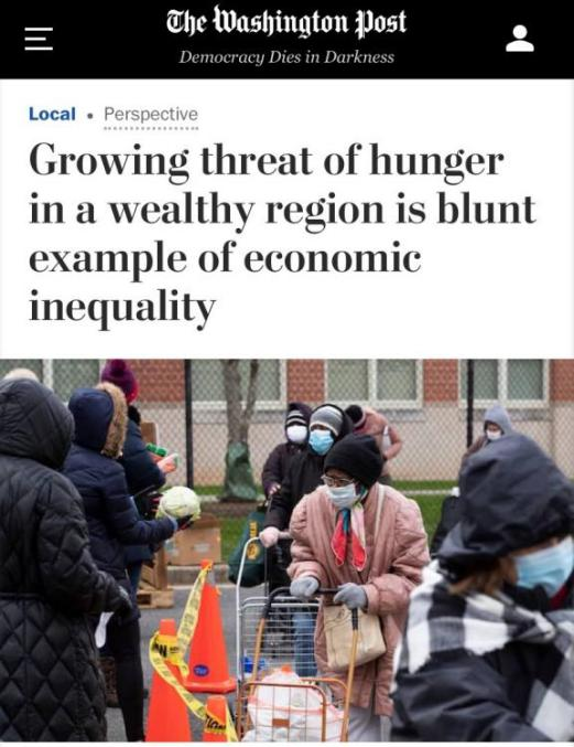 △《華盛頓郵報》稱,富裕地區飢餓人口不斷增加是貧富差距擴大的直接表現
