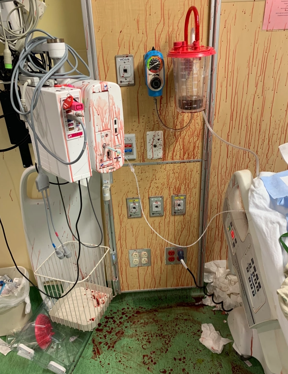 據英國小報《每日郵報》和《太陽報》報道,下圖中這個血淋淋的場景,來自美國一名感染了新冠肺炎後因併發症而死亡的13歲兒童的病房。孩子的母親希望將這一場景發佈出來,以希望警示更多美國人去認真對待疫情。