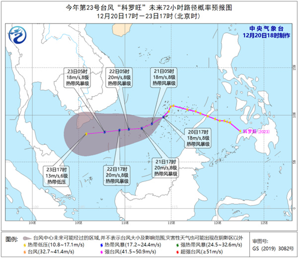 中國天氣網訊 中央氣象台12月20日18時發佈颱風藍色預警: