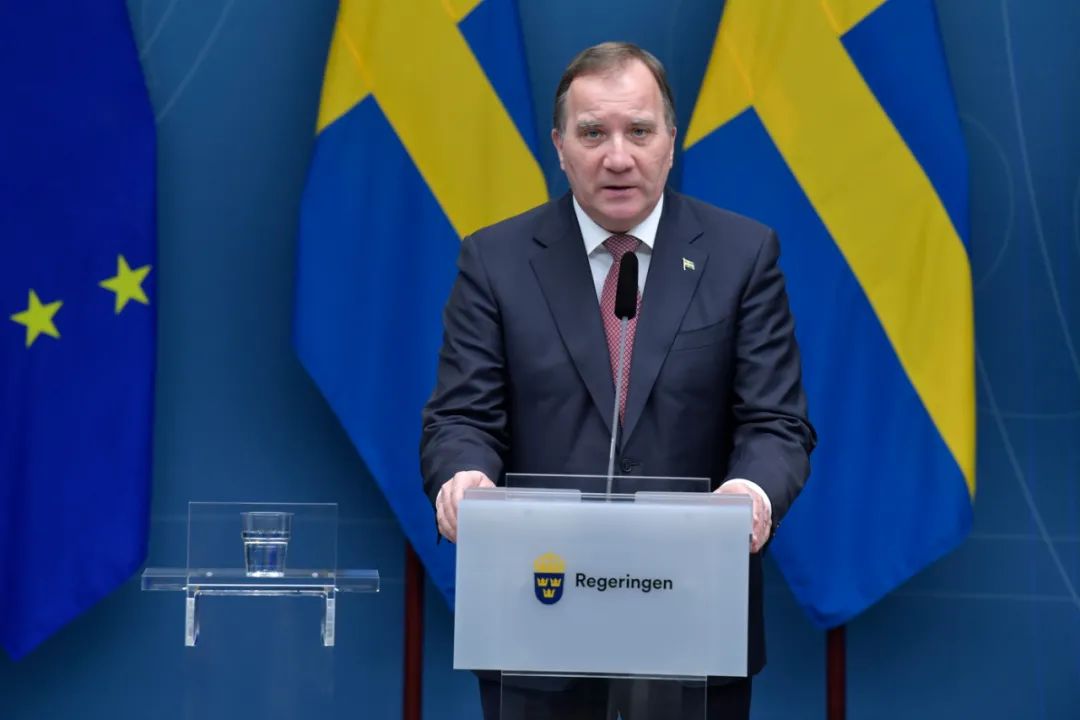 12月18日,瑞典首相勒文在斯德哥爾摩出席新聞發佈會時講話。新華社/美聯