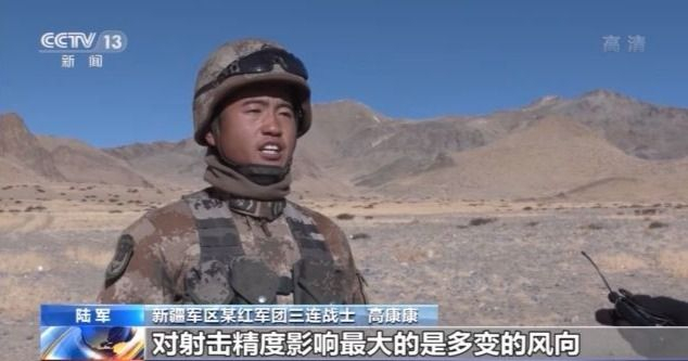 新疆軍區某紅軍團三連戰士: 此次實彈射擊,對射擊精度影響最大的是多變的風向,由於這裏處於山谷風口,時常會在炮彈出膛後突然改變風向,從而導致炮彈的飛行軌跡產生偏差。