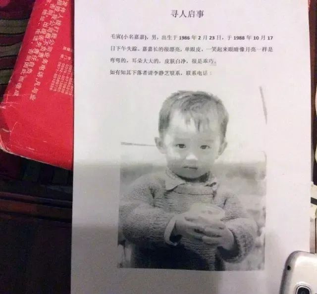 李靜芝與嘉嘉的合影以及當年印刷的尋人啓事