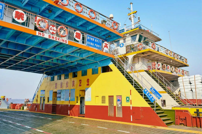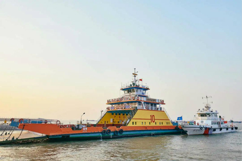 國內首艘!穿“黃馬甲”的水上汽渡船亮相長江