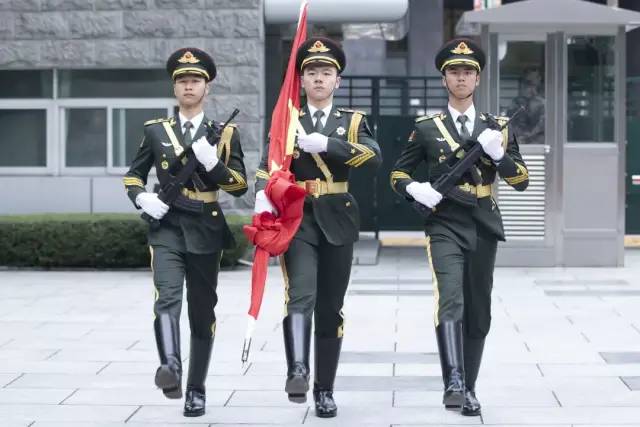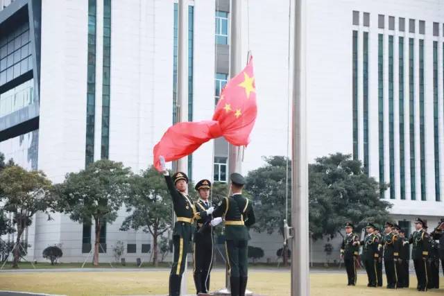 “升國旗儀式,開始!”“齊步走……”3名護旗手護送國旗,步伐鏗鏘向升旗台走去,解旗,送旗,敬禮,一氣呵成!戴寅康目送着鮮豔的五星紅旗緩緩升起,19米高的旗杆頂,那一抹鮮紅隨風飄蕩!