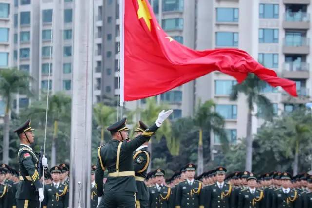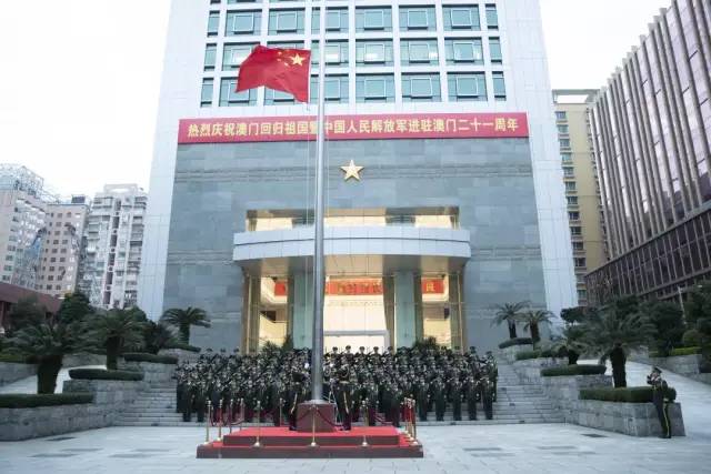 駐澳門部隊組織升國旗儀式慶祝澳門迴歸祖國21週年