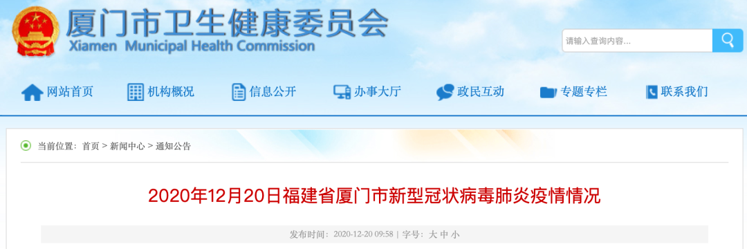 詳情公佈!12月19日廈門新增境外輸入確診病例1例!