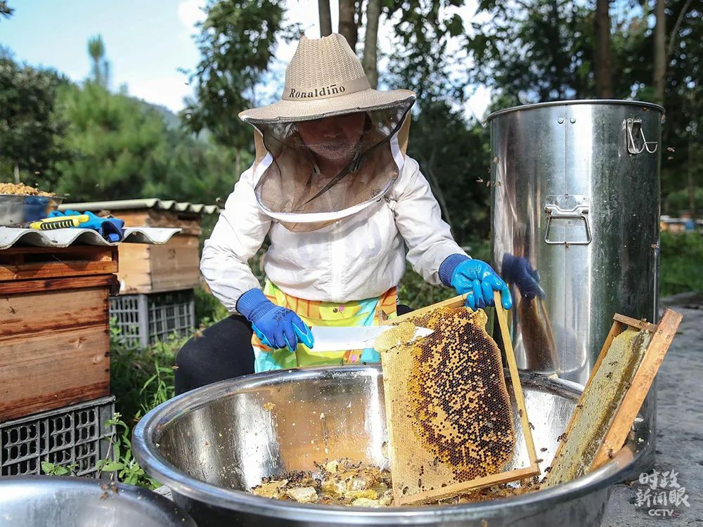 △11月23日,貴州宣佈最後9個深度貧困縣退出貧困縣序列,標誌着我國新時代脱貧攻堅目標任務如期完成。這是貴州9個深度貧困縣之一的紫雲縣村民發展“林下蜂”產業,收割蜂蜜。