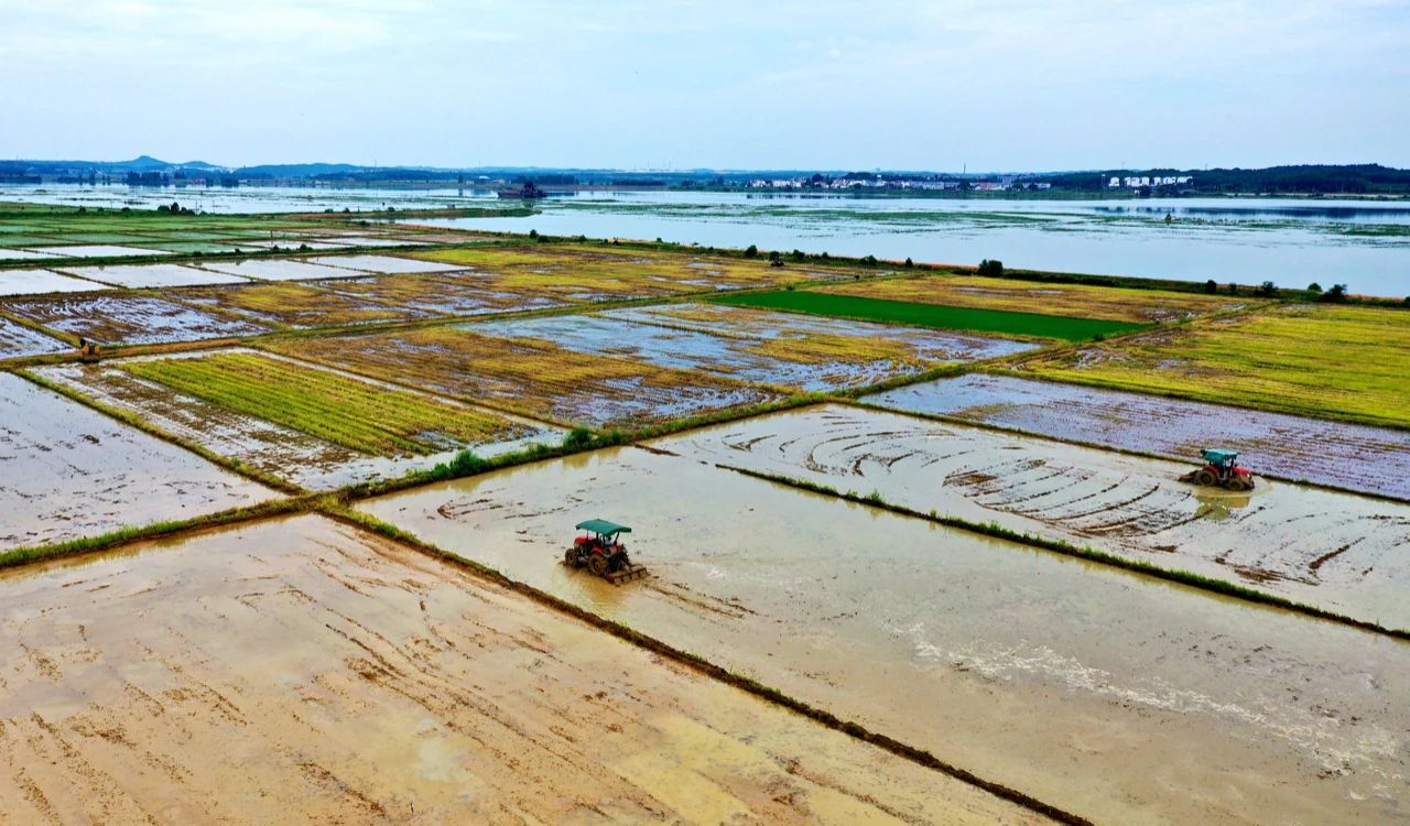 △2020年7月30日,江西省吉安市吉水縣醪橋鎮袁家村早稻收割後,村民們正忙着翻耕農田,按時播種晚稻,確保今年糧食豐收。