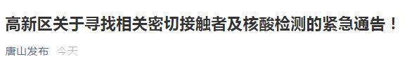 12月20日,@唐山發佈 發佈公告稱,唐山高新區有1名新冠肺炎確診病例的密切接觸者,並公佈其行動軌跡。