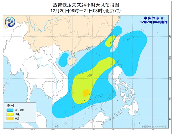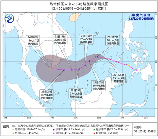 中國天氣網訊 中央氣象台12月20日06時繼續發佈熱帶低壓預報: