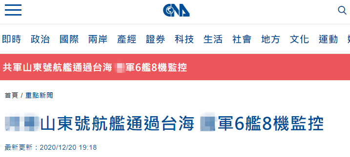 【環球網快訊 記者 尹豔輝 烏元春】據台灣“中央社”12月20日消息,台防務部門20日晚發佈新聞稿稱,解放軍“山東艦”及所屬4艘兵力,17日自遼寧大連港啓航南駛,並在今天(20日)經過台灣海峽後繼續向南航行。台防務部門宣稱,台軍派遣6艘艦船、8架次各型機“監控”。