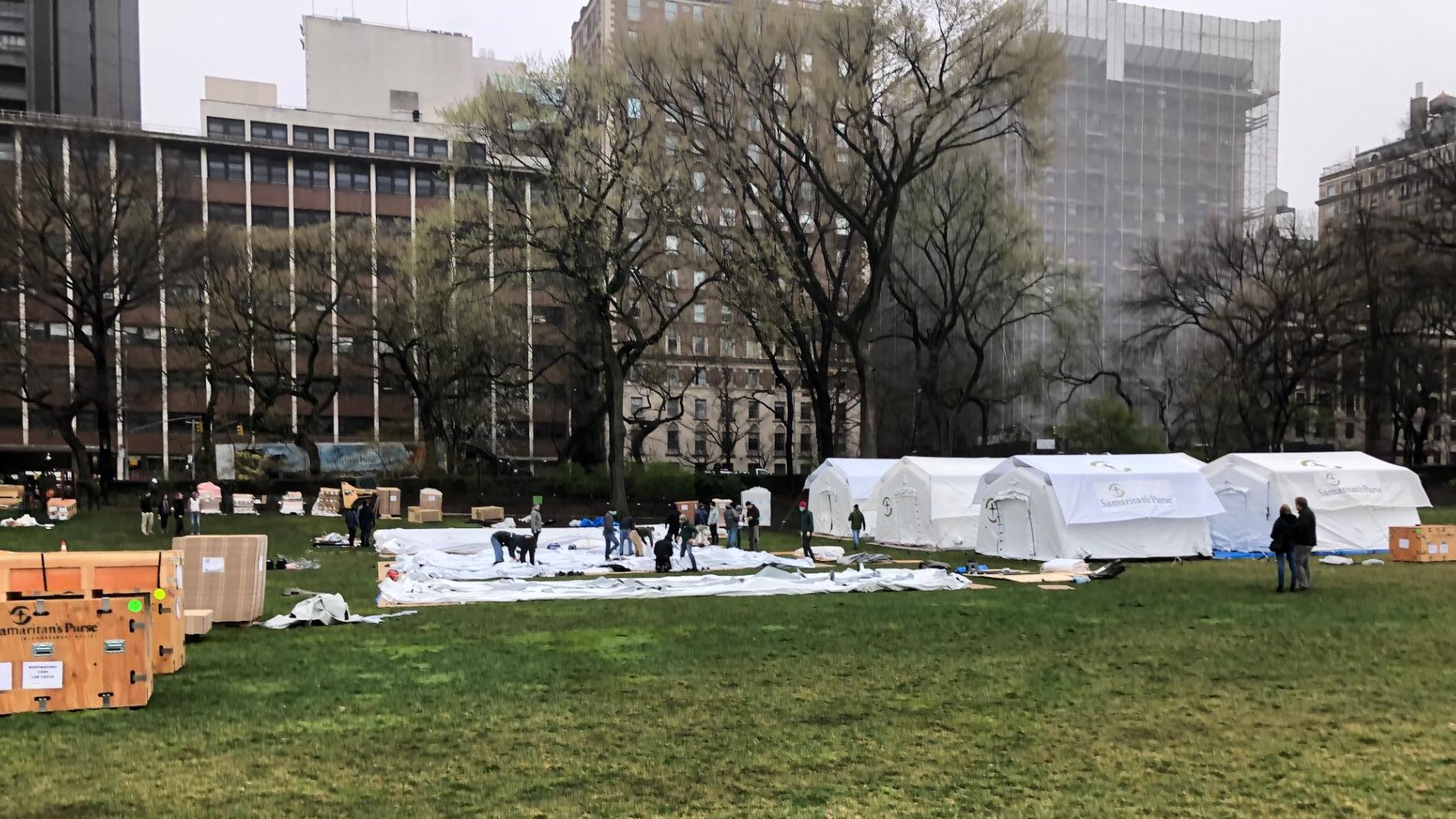△今年3月份在紐約中央公園搭建的臨時醫院