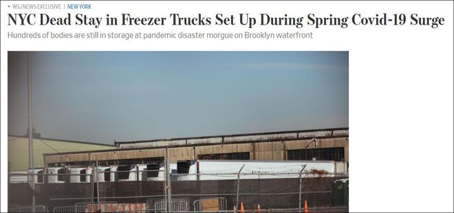 △據《華爾街郵報》11月22日報道,在紐約市布魯克林地區,數百具在春天去世的新冠患者的屍體仍存放在冷藏車中