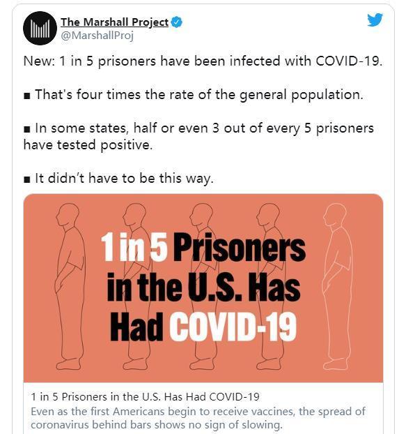 報道指出,美國仍然是受新冠病毒大流行影響最嚴重的國家,儘管美國已經開始了疫苗接種,但美國囚犯的前景並不樂觀。