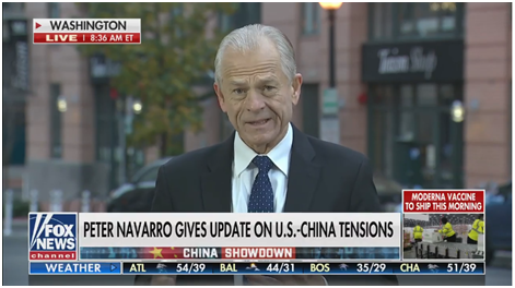 “超過20萬美國人已經死了,為什麼?”納瓦羅竟然自問自答説都是中國的錯,他進一步栽贓説,“他們不止想毀掉我們的經濟,竊取我們的知識產權,還殺害美國人,讓他們失去工作”。