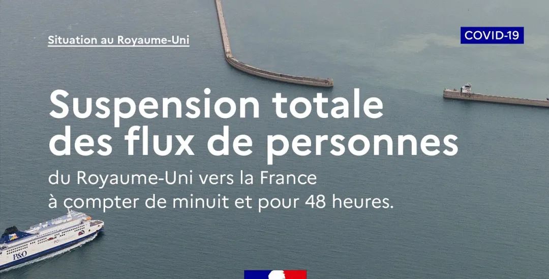當地時間20日晚,法國政府交通部長讓·巴蒂斯特·傑巴里宣佈從20日午夜起,法國暫時禁止來自英國的航班、列車和輪渡運輸入境48小時。 但前往英國的人員和交通運輸不受限制。