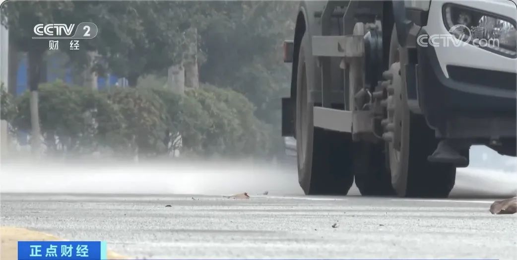 12月16日,在湖南長沙高新區,一輛環衞灑水車裝水完畢後,緩緩駛向街道,開始對路邊的綠化樹木進行葉面洗塵,這標誌着中國首宗雨水資源使用權交易成功後的第一車雨水正式投入使用。