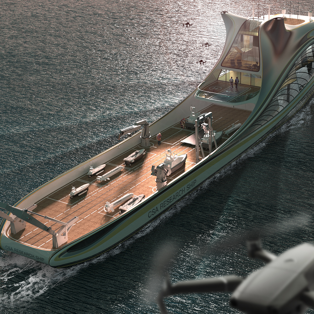 陳大可院士在簽約儀式上表示,在目前傳統海洋觀測方式陷入瓶頸之時,南方海洋實驗室提出智能型無人系統母船的設計建造,不僅是實驗室重大科學平台基礎設施建設向前推進的一大步,也是實驗室重點打造的標誌性研究成果之一。“中國首創”“未來感”“智能化”“國產率高”是這艘智能型無人系統母船最大的亮點。