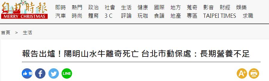 台灣陽明山上水牛離奇死亡,台北市動保處:系長期營養不足致死